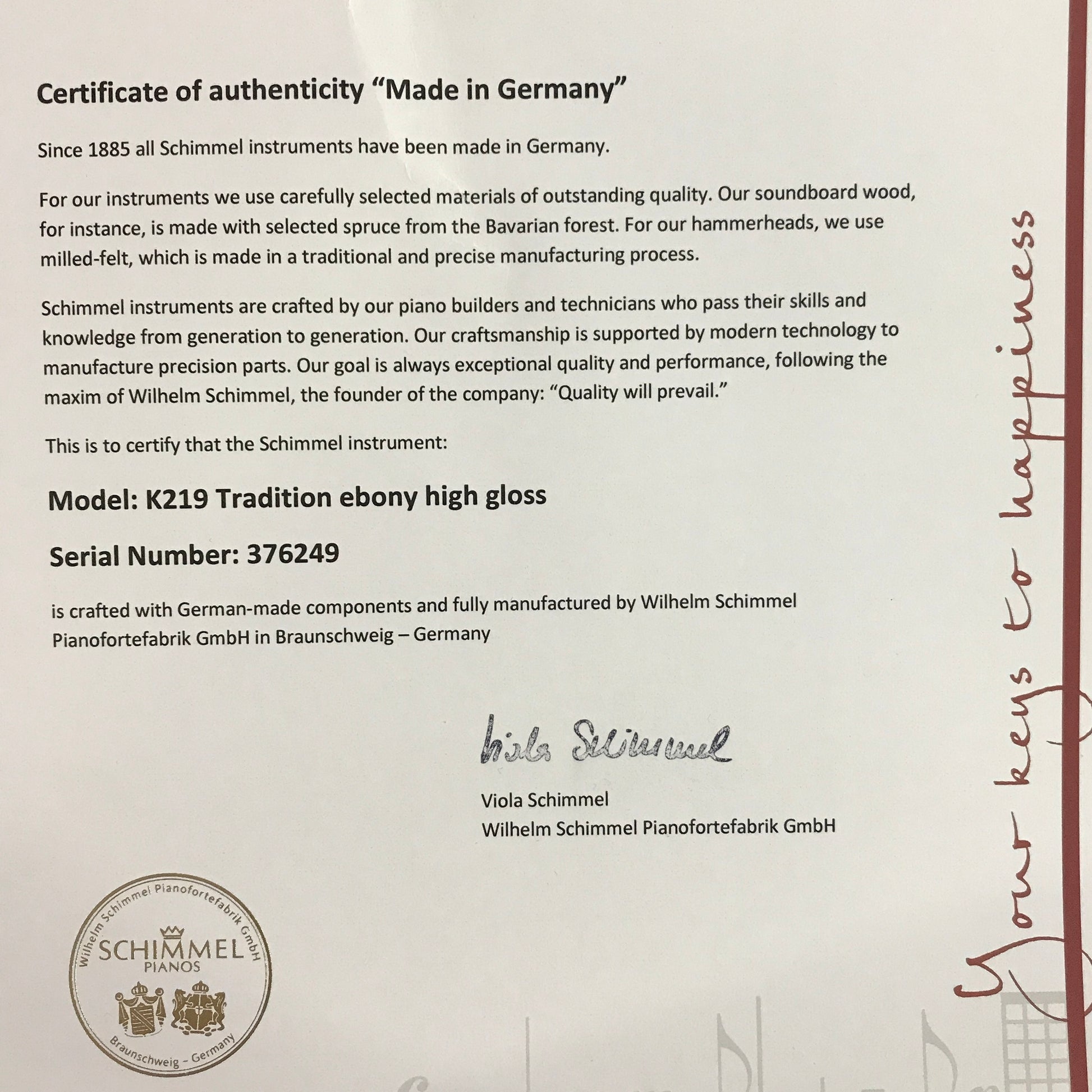 In Stock! Schimmel constructs instruments to such a high level of craftsmanship, care and build quality that one can truly say they are second to none. However they can also be surprisingly affordable. Before you plunk down your hard earned money on a similar sized piano from Steinway, Boston, Yamaha or Kawai you really owe it to yourself to come and see what all the buzz is about. You will be pleasantly surprised.