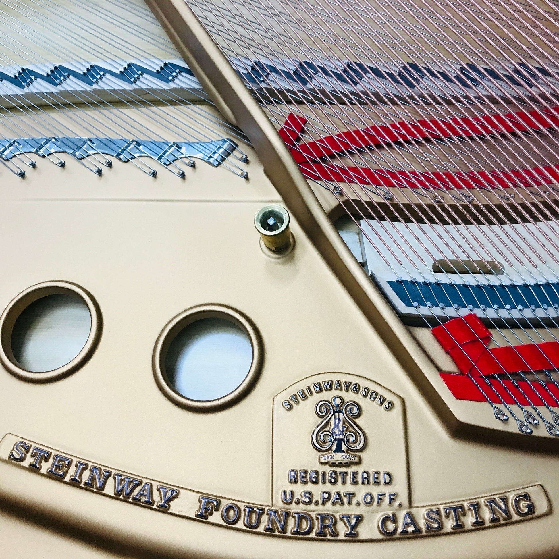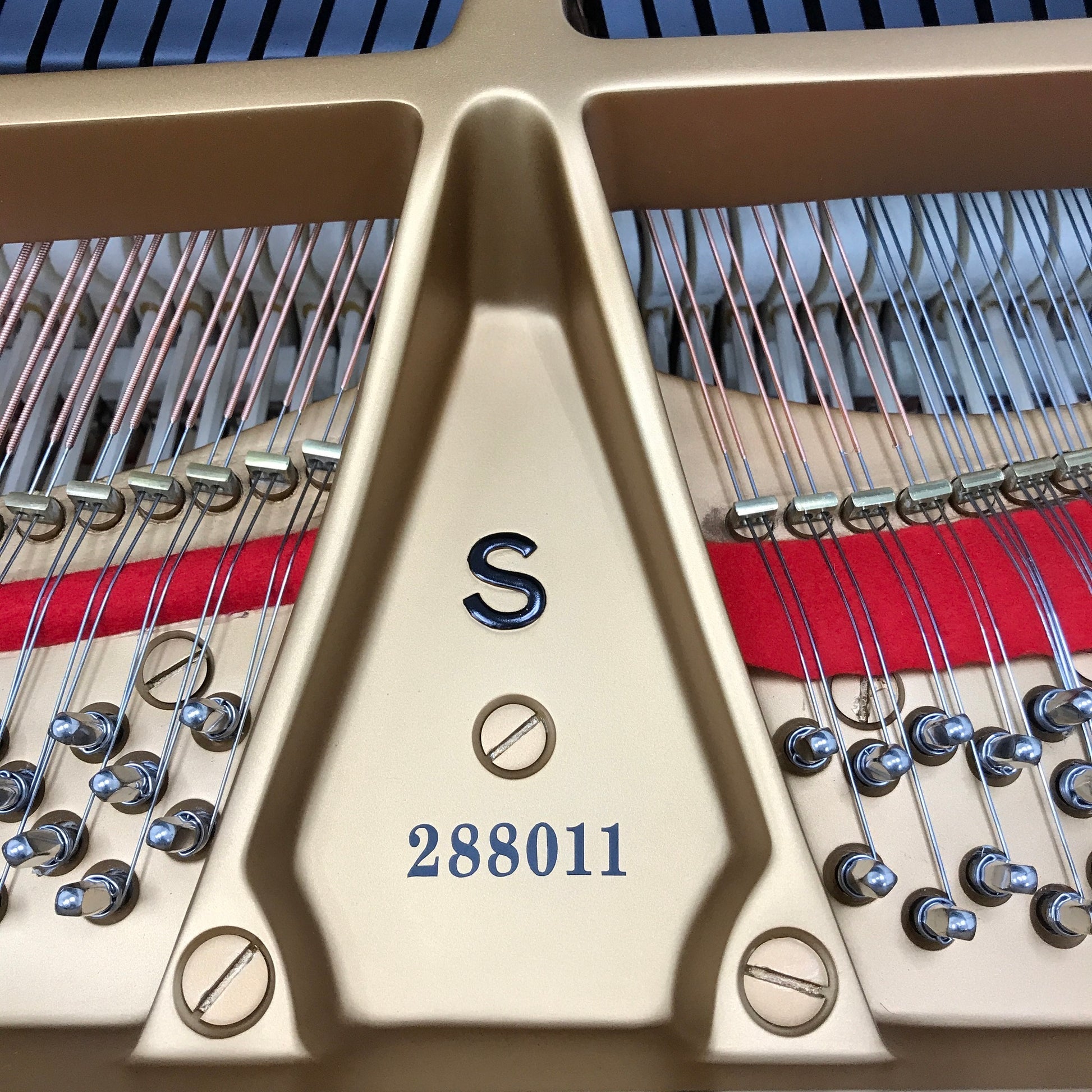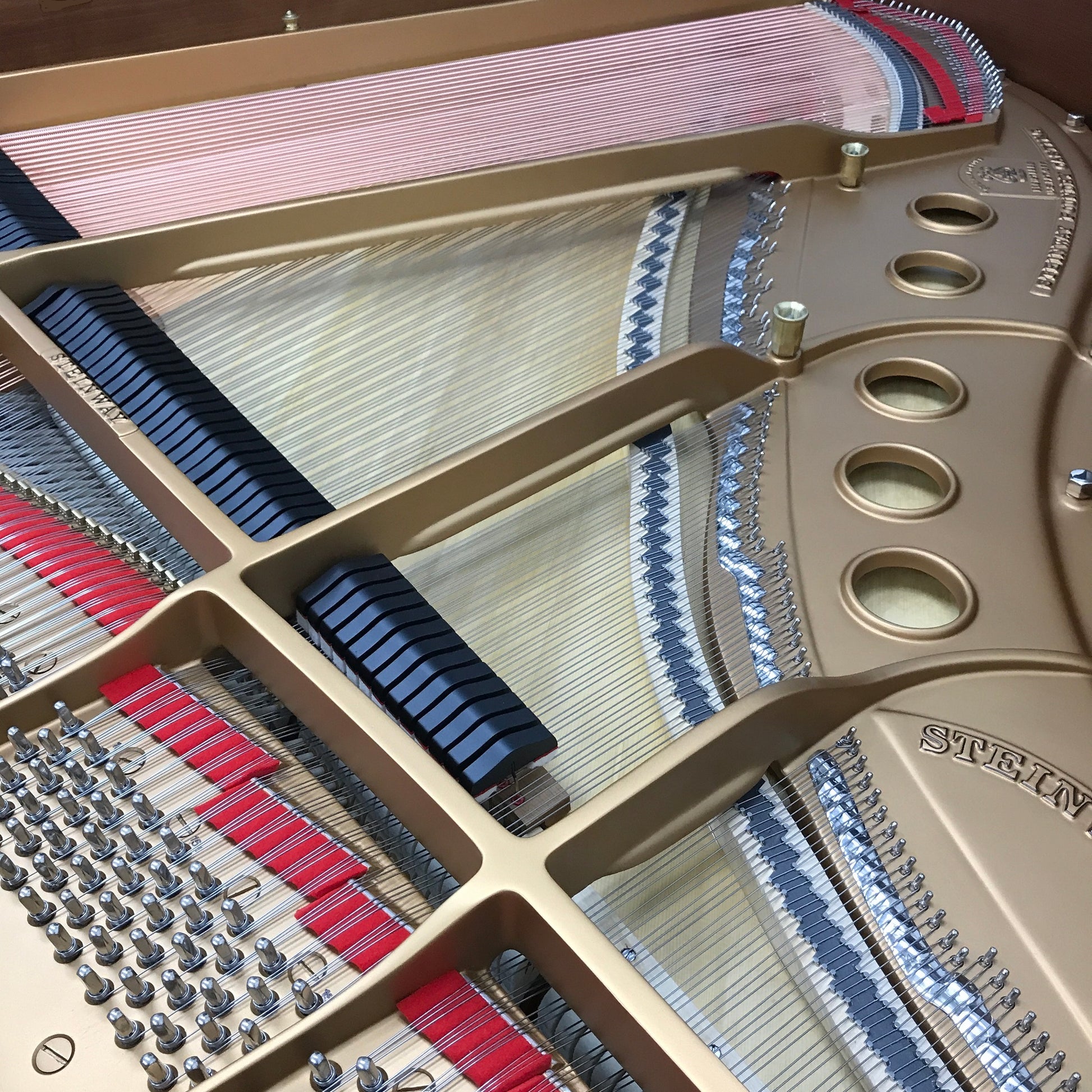 Steinways are known for their high-quality materials and impressive construction; the Steinway S Grand Piano is no exception. The heart of the piano – the soundboard – uses only superior Sitka Spruce with a minimum number of annual growth rings to produce the best sound possible. In fact, the soundboard is shaped like a violin: giving an even response throughout the scale.
